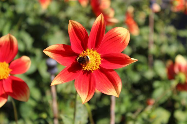 Keywords: mainau lake constance island dahlia blossom bloom hummel lake autumn bloom red nature flower