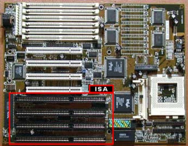 Keywords: Mainboard isa.jpg ISA sockets highlited on an old mainboard ISA