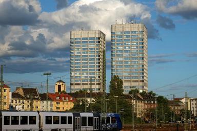 Keywords: mainz twin towers city towers architecture places of interest homes skyline building steeple railway station sky window skyscraper glass facade facade glass concrete