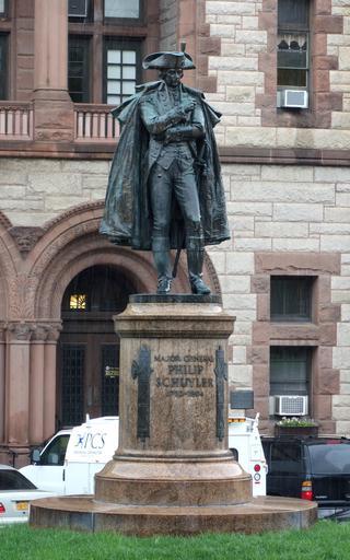 Keywords: Major General Philip Schuyler by J. Massey Rhind - Albany, NY - DSC08367.JPG The sculpture was a gift of George C Hawley in memory of his wife Theodora M Hawley Inside the base there is a chest containing newspapers coins mementoes and a picture of Mrs Hawley For additional information see the Knickerbocker Press Albany NY June 14 1925 The inscription on a plaque located in the ground in front of the sculpture reads PRESENTED IN LOVING MEMORY OF/HIS WIFE THEODORA M HAWLEY TO THE/CITY OF ALBANY BY GEORGE C HAWLEY/MCMXXV/CITIZENS' COMMITTEE/HON WM S HACKETT MAYOR FRANK B GRAVES/HON WM E WOOLLARD DR ARTHUR W ELTING This artwork is in the public domain because the artist died more than 70 years ago 2013-06-13 12 41 32 own Daderot cc-zero Uploaded with UploadWizard Major General Philip Schuyler by John Massey Rhind |