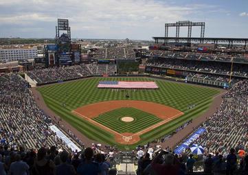 Keywords: major league baseball baseball stadium game park field fun colorado rockies crowd players athlete ball sports military national anthem mile high stadium