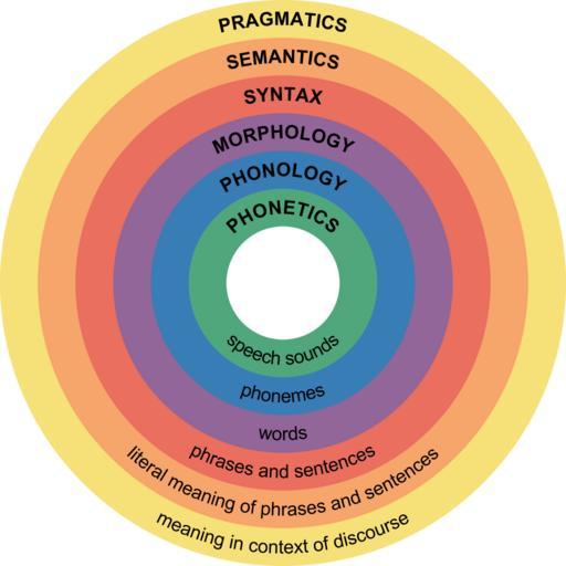 Keywords: Major levels of linguistic structure.svg en Major levels of linguistic structure Linguistics defines the levels of structure based on analysis across and within languages and computational linguistics provides the methods for assigning structure to textual data As shown in the figure the major levels of structure applicable here are phonological morphological syntactic semantic and the pragmatic or discourse level The phonological level deals with the structure of the sounds that convey linguistic content in a language The morphological level of a language is the level at which meaning can be assigned to parts of words and the level that describes how morphemes the smallest meaning elements of words are combined to make a word The syntactic level of structure concerns the structure of the sentence i e the categories of words and the order in which they are assembled to form a grammatical sentence The semantic level of structure of the sentence is computationally defined to be the level of representation supporting inferencing and other logical operations Major_levels_of_linguistic_structure jpg 2010-01-03 16 10 UTC Major_levels_of_linguistic_structure jpg James J Thomas and Kristin A Cook Ed derivative work McSush <span class signature-talk >talk</span> Major levels of linguistic structure-fr svg Created with Text Editor redrawn as svg image McSush Major_levels_of_linguistic_structure jpg PD-USGov original upload log This image is a derivative work of the following images File Major_levels_of_linguistic_structure jpg licensed with PD-USGov 2008-07-14T14 50 47Z Mdd 959x959 82554 Bytes <nowiki> en Major levels of linguistic structure National Visualization and Analytics Center http //nvac pnl gov/agenda stm Illuminating the Path The Research and Development Agenda for Visu</nowiki> Uploaded with derivativeFX Information visualization Round diagrams Sociolinguistics Visual analytics Pictures formerly showing a librsvg bug |