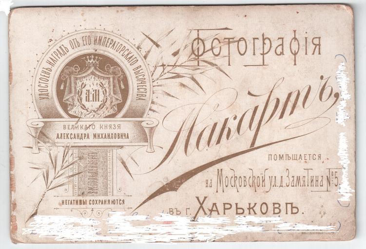 Keywords: Makart.jpg ru Фотог афия ака т в Ха ькове ул осковская 5 еизвестно 1900s-1910 Семейный а хив Г иго ия Ганзбу га Поко ный Одесса Российская Импе ия <gallery>File Pavel Rozin jpg</gallery> PD-RusEmpire PD-old-70 Uploaded with UploadWizard Photographers from Kharkiv Photographers from Odessa Moskovskyi Avenue Kharkiv Alexandr Mikhailovich of Russia |