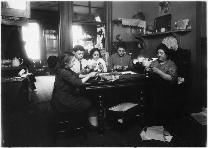| Keywords: nara:arcid=523523 u.s. national archives usnationalarchives lewis hine lewishine blackandwhite monochrome indoor black and white Original Caption: Making neckties in the kitchen. The 11 year old girl and 13 year old boy work on the ties every day after school. The mother on right works steadily. Two neighbors help with the work. New York City, February 1912 U.S. National Archives’ Local Identifier: 102-LH-2877 Photographer: Hine, Lewis Subjects: Child Labor National Child Labor Committee Working Conditions Factory Persistent URL: research.archives.gov/description/523523 Repository: Still Picture Records Section, Special Media Archives Services Division (NWCS-S), National Archives at College Park, 8601 Adelphi Road, College Park, MD, 20740-6001. For information about ordering reproductions of photographs held by the Still Picture Unit, visit: www.archives.gov/research/order/still-pictures.html Reproductions may be ordered via an independent vendor. NARA maintains a list of vendors at www.archives.gov/research/order/vendors-photos-maps-dc.html Access Restrictions: Unrestricted Use Restrictions: Unrestricted Original Caption: Making neckties in the kitchen. The 11 year old girl and 13 year old boy work on the ties every day after school. The mother on right works steadily. Two neighbors help with the work. New York City, February 1912 U.S. National Archives’ Local Identifier: 102-LH-2877 Photographer: Hine, Lewis Subjects: Child Labor National Child Labor Committee Working Conditions Factory Persistent URL: research.archives.gov/description/523523 Repository: Still Picture Records Section, Special Media Archives Services Division (NWCS-S), National Archives at College Park, 8601 Adelphi Road, College Park, MD, 20740-6001. For information about ordering reproductions of photographs held by the Still Picture Unit, visit: www.archives.gov/research/order/still-pictures.html Reproductions may be ordered via an independent vendor. NARA maintains a list of vendors at www.archives.gov/research/order/vendors-photos-maps-dc.html Access Restrictions: Unrestricted Use Restrictions: Unrestricted |