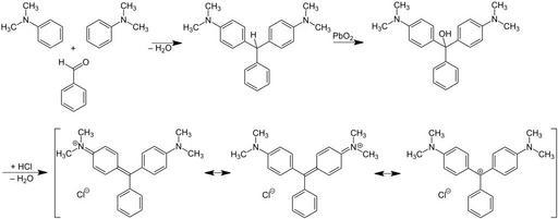 Keywords: Malachite green Synthesis V.2.svg en Malachite_green_Synthesis de Malachitgrün_Synthese own Jü 05/07/2010 Malachite green