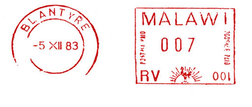 Keywords: Malawi stamp type C9.jpg en Meter stamp catalog image Malawi type C9 Richard Stambaugh Richard Stambaugh 2012-02-04 Meter stamps