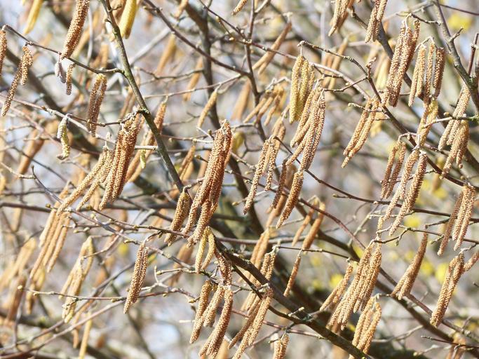 Keywords: male blütenkätzchen flowers blossom kitten inflorescences pollen supplier common hazel corylus avellana hazel birch greenhouse betulaceae tree bush road sausage