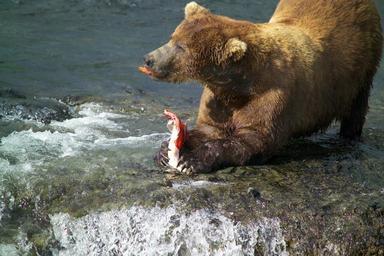 Keywords: Young bear catch salmon fishing brown sockeye river water