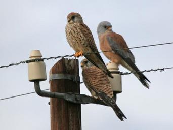| Keywords: Male and female Lesser Kestrels.jpg Photographed by Neil Gray on 25 February 2006 near Hanover Northern Cape South Africa Camera Canon EOS 20D Shutter 1/1600 sec Aperture 5 6 ISO 200 Focal length 375mm -- Public Domain Falco naumanni Birds of the Northern Cape |