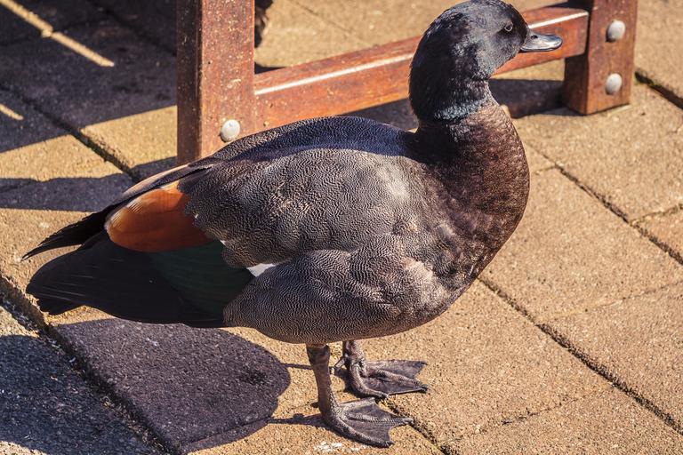 | Keywords: outdoor Unusually for ducks, the female paradise shelduck is more eye-catching than the male; females have a pure white head and chestnut-coloured body, while males have a dark grey body and black head. Paradise shelducks are commonly observed flying in pairs or grazing on pasture. They are very vocal birds, with males giving a characteristic ‘zonk zonk’, while females make a more shrill ‘zeek zeek’ while flying or as a warning to intruders. www.doc.govt.nz/nature/native-animals/birds/birds-a-z/par... nzbirdsonline.org.nz/species/paradise-shelduck en.wikipedia.org/wiki/Paradise_shelduck Unusually for ducks, the female paradise shelduck is more eye-catching than the male; females have a pure white head and chestnut-coloured body, while males have a dark grey body and black head. Paradise shelducks are commonly observed flying in pairs or grazing on pasture. They are very vocal birds, with males giving a characteristic ‘zonk zonk’, while females make a more shrill ‘zeek zeek’ while flying or as a warning to intruders. www.doc.govt.nz/nature/native-animals/birds/birds-a-z/par... nzbirdsonline.org.nz/species/paradise-shelduck en.wikipedia.org/wiki/Paradise_shelduck |