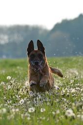 Keywords: malinois dandelion meadow motion recording running dog friendly belgian shepherd dog male meadow
