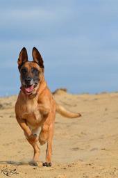 Keywords: malinois sand summer beach warm sun belgian shepherd dog blue sky running dog attention