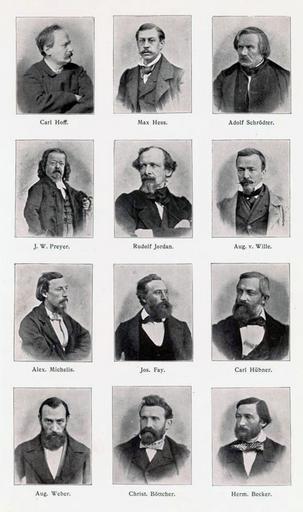| Keywords: Malkasten Künstlerverein Mitglieder 3.jpeg  de Malkasten Künstlerverein Mitglieder in der Zeit zwischen 1848 bis 1898 Carl Hoff Max Hess Adolf Schrödter J W Preyer Rudolf Jordan August v Wille Alex Michels Jos Fay Carl Hübner Aug Weber Christ Böttcher Herm Becker Abbildung in Geschichte des Künstlervereins Malkasten von Eduard Daelen 1898 1898 http //digital ub uni-duesseldorf de/urn/urn nbn de hbz 061 1-23658 Eduard Daelen 18 März 1848 in Hörde;   9 Mai 1923 in Düsseldorf deutscher Maler und Schriftsteller other versions PD-old-70-1923 Malkasten Düsseldorf Joseph Fay |