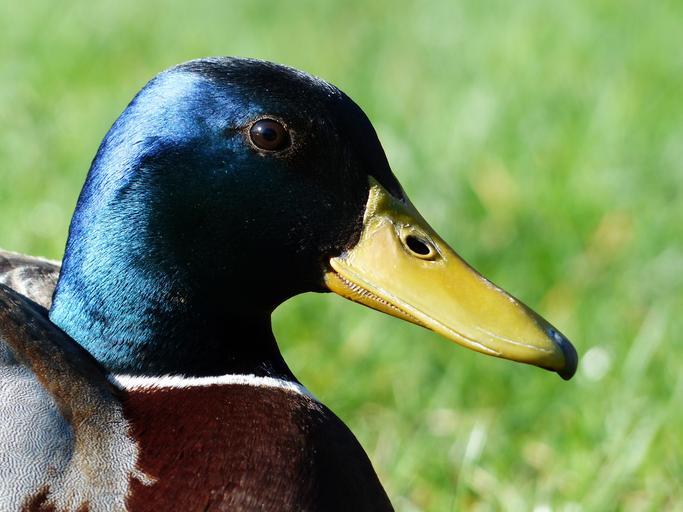 Keywords: mallard drake males anas platyrhynchos march duck species duck bird anatidae swimming duck house duck shine head blue metallic metallic bluish bill white collar neck ring
