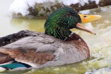 Keywords: mallard male drake plumage colorful swim bill feather water snow wash nature artificial duck pond pond liner