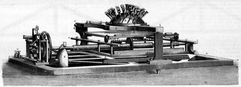 Keywords: Malling Hansen 1872.png en The British periodical The Engineer reported from the Copenhagen Exhibition of 1872 a couple of times including a piece in its August 2 1872 issue Here is what is described as a new version of the Writing Ball designed by R Malling Hansen This version had the paper placed on a flat surface making it easier to read during typing and easier to replace when completed The Engineer 1872-08-02 page 69 author 1872 Hansen Writing Ball PD-old-70-1923 |
