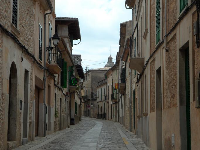 Keywords: mallorca road mediterranean road train village street facades building homes row eng alley narrow architecture live city view spain cityscape city village quiet