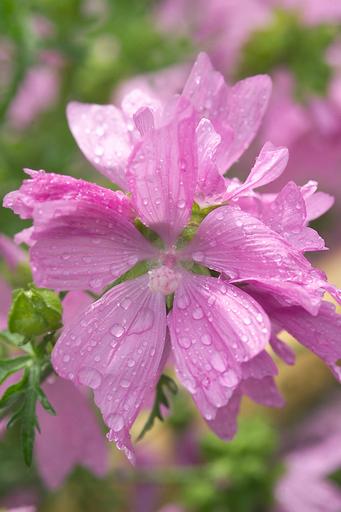 Keywords: mallow pink mallow pink flower summer flower rain dew