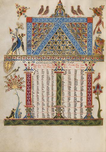 | Keywords: Malnazar - Canon Table Page - Google Art Project (6831740).jpg 4180277 Malnazar Armenian /collection/the-j-paul-getty-museum/artwork/canon-table-page-malnazar/6831740/ Malnazar illuminator /artist/malnazar/4191038/ 4191038 /collection/the-j-paul-getty-museum/ The J Paul Getty Museum 343005 http //www getty edu/museum 3/12/2012 5 39 54 PM /collection/the-j-paul-getty-museum/artwork/canon-table-page-malnazar/6831740/ 1637 1637 - 1638 Birds Flowers Tempera colors gold paint and gold leaf on parchment 252 6831740 True 1638 3/25/2012 12 41 42 PM lido getty edu-gm-obj110759 http //www getty edu/art/gettyguide/artObjectDetails artobj 110759 http //www getty edu/legal/copyright html Folio 1630 1640 Isfahan Persia Creation w183 x h252 cm 1637 - 1638 False 0 6953125 Part canon-table-page-malnazar Canon Table Page c 183 Tempera colors gold paint and gold leaf on parchment Birds Flowers http //www getty edu/legal/copyright html special url_id HAHd3De2n4w76w PD-old-100 Google Art Project works by Malnazar MS LUDWIG I 14 Getty museum - Malnazar's bible Canon tables Medieval miniatures of peacocks |