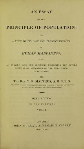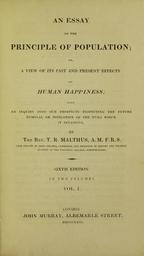 | Keywords: Malthus - Essay on the principle of population, 1826 - 5884843.tif  Book Malthus Thomas Robert Essay on the principle of population John Murray Albemarle street London eng it An essay on the principle of population; or A view of its past and present effects on human happiness; with inquiry into our prospects respecting the future removal or mitigation of the evils which it occasions By T R Malthus ¦ 1 - London John Murray Albemarle street 1826 London printed C Roworth Bell Yard Temple Bar - XVIII 535 1 p ; 4° - Segn A-2L4 2M4 BEIC 5884843 Institution BEIC PD-old-100-1923 Economics by decade Thomas Malthus Economics book covers |