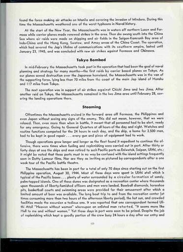 | Keywords: big mamie bigmamie naval navy history ww2 battleship massachusetts bb 59 bb59 text document I had a great uncle (whom I never met) who served on the battleship USS MASSACHUSETTS during WW2. He had (I think) several copies of this tour book that was given to the crew after the war, and his sister (my paternal grandmother) got a hold of a copy, and later gave it to me. I had a great uncle (whom I never met) who served on the battleship USS MASSACHUSETTS during WW2. He had (I think) several copies of this tour book that was given to the crew after the war, and his sister (my paternal grandmother) got a hold of a copy, and later gave it to me. |