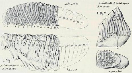 | Keywords: Mammuthus primigenius lectotypes-ar.jpg ar ضرسان شكَّلا العيِّنة النمطيَّة من الماموث الصُوفي وفقًا لِلعالم الأمريكي هنري فارفيلد أوزبورن، الذي رسمهما استنادًا إلى طبعتان جصيَّتان من المتحف الأمريكي 2015-04-11 00 16 02 Derivative from this file Original Henry Fairfield Osborn Derivative باسم other versions English Translated to Arabic - عُرِّبت باسم Mammuthus primigenius lectotypes jpg Custom license marker 2016 07 30 PD-US-not renewed PD-old Mammuthus primigenius teeth Henry Fairfield Osborn |