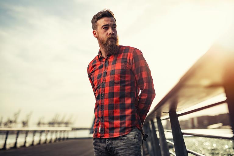 | Keywords: man beard red plaid shirts red shirts red checkered shirts red checkers beards hairy men males people persons jeans outdoors rail road paths walking path slats grass nature face adult caucasian white guy casual man hair posing man face thinking expression emotions |