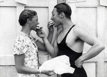 | Keywords: nederland holland eten eat broodje sandwich badkleding bathing suit bathingsuit jaren '30 jaren30 1930's 1930s the netherlands thenetherlands blackandwhite monochrome black and white Nationaal Archief / Spaarnestad Photo, SFA004000766 Man in badkleding en jonge vrouw (zwemster Willy den Ouden) geven elkaar hap van broodje. Begin jaren '30, plaats onbekend. Man in bathing suit and woman sharing their sandwiches. Location unknown. Early 1930's. Collectie Spaarnestad Voor meer informatie en voor meer foto’s uit de collectie van Spaarnestad Photo, bezoek onze Beeldbank: www.spaarnestadphoto.nl/ U kunt ons helpen onze kennis van de fotocollecties te verrijken door tags en commentaren toe te voegen. Herkent u mensen of locaties of heeft u een bijzonder verhaal te vertellen bij één van de foto’s, laat dan een reactie achter (als u ingelogd bent bij Flickr) of stuur een mailtje naar: hhamelink@spaarnestadphoto.nl You can help us gain more knowledge on the content of our collection by simply adding a comment with information. If you do not wish to log in, you can write an e-mail to: hhamelink@spaarnestadphoto.nl Nationaal Archief / Spaarnestad Photo, SFA004000766 Man in badkleding en jonge vrouw (zwemster Willy den Ouden) geven elkaar hap van broodje. Begin jaren '30, plaats onbekend. Man in bathing suit and woman sharing their sandwiches. Location unknown. Early 1930's. Collectie Spaarnestad Voor meer informatie en voor meer foto’s uit de collectie van Spaarnestad Photo, bezoek onze Beeldbank: www.spaarnestadphoto.nl/ U kunt ons helpen onze kennis van de fotocollecties te verrijken door tags en commentaren toe te voegen. Herkent u mensen of locaties of heeft u een bijzonder verhaal te vertellen bij één van de foto’s, laat dan een reactie achter (als u ingelogd bent bij Flickr) of stuur een mailtje naar: hhamelink@spaarnestadphoto.nl You can help us gain more knowledge on the content of our collection by simply adding a comment with information. If you do not wish to log in, you can write an e-mail to: hhamelink@spaarnestadphoto.nl |