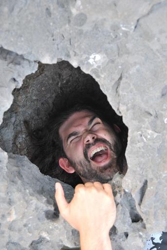 Keywords: man falling hanging screaming afraid stone male caucasian danger