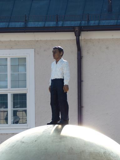 Keywords: man fig male figure artwork balkenhol mozartkugel sphaera salzburg ball gold kapitelplatz austria