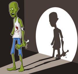 Keywords: man frankenstein blood bone dark horror spotlight torn cloth undead zombie monster green injury shadow
