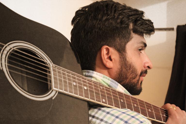 Keywords: man model creative shooting human face portrait looking attractive healthy fashion studio male happy care eyes young head adult guitar music musical instrument
