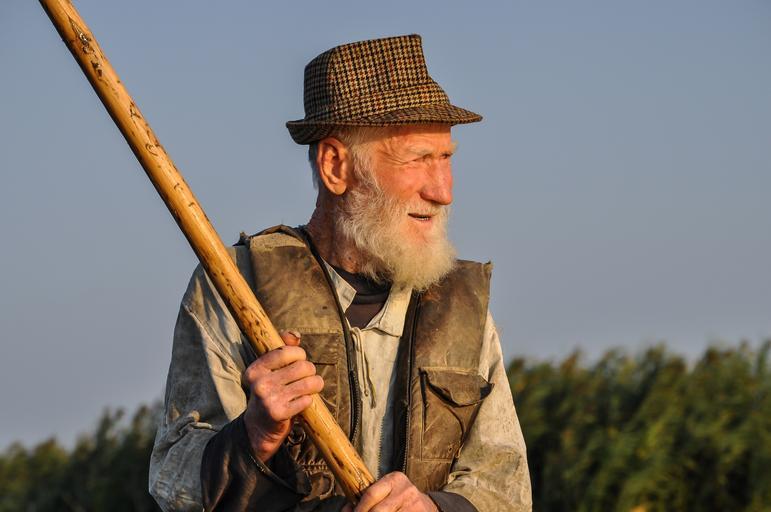 Keywords: man old fisherman portrait content pleased happy satisfied traditional person male activity active healthy adult