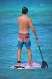 Keywords: man people paddle sea swim shorts surfboard
