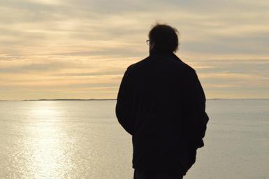 Keywords: man sea horizon light only side evening silhouette color france walk thoughtful ocean