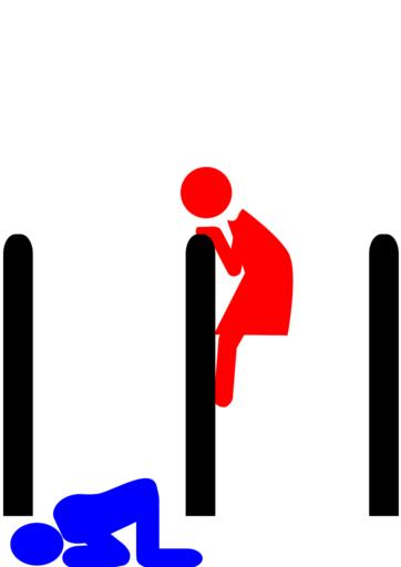 Keywords: man woman sign icon symbol boy lady silhouette female male girl symbols funny toilet pictogram bathroom restroom stickman stick figure matchstick man gents peek signage toilette washroom loo blue red climbing looking