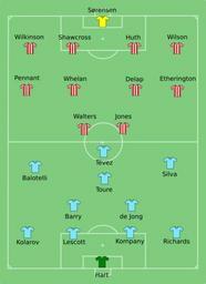 | Keywords: Manchester City vs Stoke City 2011-05-14.svg en Line-ups for the 2011 FA Cup Final between Manchester City and Stoke City at Wembley Stadium London on 14 May 2011 vi Đội hình xuất phát trận Chung kết Cúp FA 2011 giữa Manchester City và Stoke City tại sân vận động Wembley Luân Đôn vào ngày 14 tháng 5 năm 2011 own Banhtrung1 2011-05-16 Cc-zero FA Cup Final 2011 |