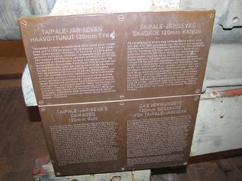 Keywords: Maneesi 120 41 A memorial plaque.JPG QF 4 7 /40 12 cm Mark IV gun in Maneesi Military Museum This gun was built in Kure Japan under license and later sold to Russian Empire Taken over by Finland and given the designation 120/41 A 120 mm 41 caliber model Armstrong This gun was used in the Järisevä coastal fort where it supported the Finnish defences at Mannerheim Line and was damaged during Winter War See also File Maneesi 120 41 A side 2 JPG right side view File Maneesi 120 41 A barrel JPG right side muzzle close-up view File Maneesi 120 41 A front JPG muzzle view File Maneesi 120 41 A side JPG left side breech view File Maneesi 120 41 A rear JPG breech end view File Maneesi 120 41 A information plaque JPG information plaque fi 120/41 A eli 120 mm n 41 kaliiperin rannikkotykki mallia Armstrong Sotamuseon Maneesissa Englantilainen QF 4 7 /40 12 cm Mark IV valmistettu Kuressa Japanissa lisenssillä ja myöhemmin myyty Venäjän keisarikuntaan Tykki oli talvisodassa Järisevän rannikkolinnakkeella jossa se tuki Mannerheim-linjan puolustajia ja vaurioitui taisteluissa own MKFI 2010-05-13 60 8 45 09 N 24 59 20 61 E region FI QF 4 7 inch Gun Mk I - IV Coastal artillery in Finland Manege Military Museum Taken with Canon PowerShot SX10 IS Plaques referencing 1939 Plaques referencing 1940 Files by User MKFI |