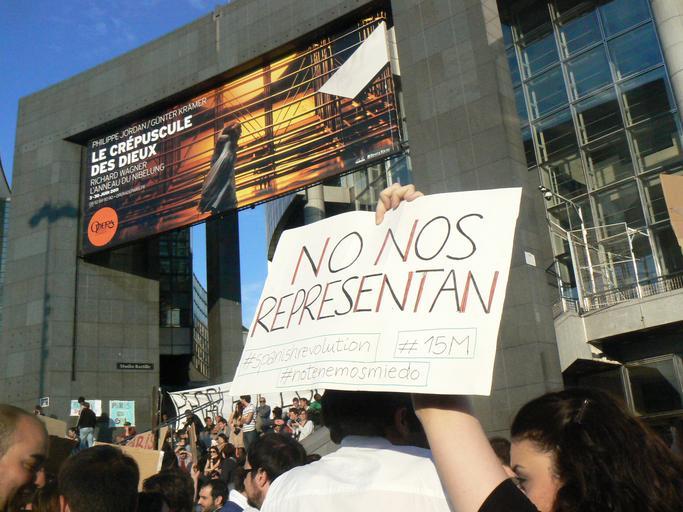 | Keywords: Manifestations des indignés à Bastille 07.jpg fr Manifestations des indignés -pour une réelle démocracie - en mai 2011 à la place Bastille de Paris Des citoyens Français et d'autres nationalités habitant en France protestent contre les privilèges salariales de chômage et retraitre etc de la classe politique des cas de corruption parmi eux des familles royales dans les partis Le Pen Sarkoky Miterrand Aubry/Delors et d'autres qui heritent leurs postes de parents à fils et filles et se son servilisme aux banquiers Le rol des reseaux sociales en internet se reflexe aux contenus des pancartes own Slastic 2011-05-20 Demonstration by Indignants in Paris May 2011 Twitter Opéra Bastille |