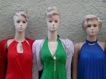Keywords: mannequins dolls face fashion women portrait styling red green blue
