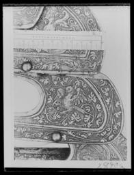 Keywords: Manpansar, möjligen tillhörigt Johan III, 1500-talets mitt - Livrustkammaren - 10973.tif LSH artwork sv Driven stålplåt med heltäckande etsad dekor Insidan svärtad med tydliga slagmärken Bestående av elva U-formiga skenor ökande i längd bakåt Skenorna lagda omlott och sammanfogade i varandra med längsgående 25 mm breda band av gulvitt sämskat skinn fästade med en nit i var skena På var sida en urtagning rektangulär med rundad nedre kant och vid sidan om denna en dekorativ nit med kullrig gulmetallhätta Kanterna nertill lätt rundade och baktill fasade Första skenan med insvängda sidor i mitten 24 mm långt spärrstift och längs yttre kanten genomgående hål i rad Sista skenans yttre kant omvikt rundsmidd och repstavsfilad bredd ca 15 mm Etsad dekor blanka figurer mot mörk bakgrund På nedre delen fabliska djur och porträtt inom ovaler omgärdat av slingrande växtrankor På övre delen olika motiv som stående lejon ställda mot varandra och mytologiska scener allt omgärdat av slingrande rankor original caption mid other date century 16 brass - leather Färg gulvit material läder - steel Färg blankt svart material stål size mm 780 330 LRK Johan III av Sverige Hästen 1991 Tre Konungar på Åbo slott 1993 Björneborg - Johans stad Satakunta Museum Björneborg/Pori 2008 Trofast - hov och tass i kunglig tjänst 2010-2011 Livrustkammaren Trogna vänner - Kungliga hästar och hundar 2011-2012 Museiverket/Finlands nationalmuseum place of origin original filename LN_E02897 59502 inventory number LRK 22860 10973 CC0 Manpansar möjligen tillhörigt Johan III 1500-talets mitt - Livrustkammaren - 10973-negative tif <gallery caption Different images of same object > File Manpansar möjligen tillhörigt Johan III 1500-talets mitt - Livrustkammaren - 19537 tif File Manpansar möjligen tillhörigt Johan III 1500-talets mitt - Livrustkammaren - 79458 tif File Manpansar möjligen tillhörigt Johan III 1500-talets mitt - Livrustkammaren - 36657 tif File Manpansar möjligen tillhörigt Johan III 1500-talets mitt - Livrustkammaren - 62337 tif File Manpansar möjligen tillhörigt Johan III 1500-talets mitt - Livrustkammaren - 70899 tif File Manpansar möjligen tillhörigt Johan III 1500-talets mitt - Livrustkammaren - 53776 tif File Manpansar möjligen tillhörigt Johan III 1500-talets mitt - Livrustkammaren - 45215 tif File Manpansar möjligen tillhörigt Johan III 1500-talets mitt - Livrustkammaren - 35519 tif File Manpansar möjligen tillhörigt Johan III 1500-talets mitt - Livrustkammaren - 2413 tif File Manpansar möjligen tillhörigt Johan III 1500-talets mitt - Livrustkammaren - 28096 tif </gallery> <gallery caption Related objects > File Ländpansar till hästrustning troligen tillhörigt Johan III 1500-tal - Livrustkammaren - 79460 tif LRK 22862 File Ländpansar till hästrustning troligen tillhörigt Johan III 1500-tal - Livrustkammaren - 36659 tif LRK 22862 File Bogpansar till hästrusning troligen tillhörigt Johan III 1500-tal - Livrustkammaren - 35526 tif LRK 22861 File Ländpansar till hästrustning troligen tillhörigt Johan III 1500-tal - Livrustkammaren - 70895 tif LRK 22862 File Bogpansar till hästrusning troligen tillhörigt Johan III 1500-tal - Livrustkammaren - 44085 tif LRK 22861 File Bogpansar till hästrusning troligen tillhörigt Johan III 1500-tal - Livrustkammaren - 79454 tif LRK 22861 File Utställningsbild sadlar hästrustningar mm - Livrustkammaren - 77173 tif LRK 22861 File Ländpansar till hästrustning har troligen tillhört Johan III 1500-tal - Livrustkammaren - 10975 tif LRK 22862 File Ländpansar till hästrustning troligen tillhörigt Johan III 1500-tal - Livrustkammaren - 2415 tif LRK 22862 </gallery> Horse armours Media contributed by LSH 2016-12 |