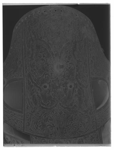 Keywords: Manpansar, möjligen tillhörigt Johan III, 1500-talets mitt - Livrustkammaren - 19537-negative.tif LSH artwork sv Driven stålplåt med heltäckande etsad dekor Insidan svärtad med tydliga slagmärken Bestående av elva U-formiga skenor ökande i längd bakåt Skenorna lagda omlott och sammanfogade i varandra med längsgående 25 mm breda band av gulvitt sämskat skinn fästade med en nit i var skena På var sida en urtagning rektangulär med rundad nedre kant och vid sidan om denna en dekorativ nit med kullrig gulmetallhätta Kanterna nertill lätt rundade och baktill fasade Första skenan med insvängda sidor i mitten 24 mm långt spärrstift och längs yttre kanten genomgående hål i rad Sista skenans yttre kant omvikt rundsmidd och repstavsfilad bredd ca 15 mm Etsad dekor blanka figurer mot mörk bakgrund På nedre delen fabliska djur och porträtt inom ovaler omgärdat av slingrande växtrankor På övre delen olika motiv som stående lejon ställda mot varandra och mytologiska scener allt omgärdat av slingrande rankor original caption mid other date century 16 brass - leather Färg gulvit material läder - steel Färg blankt svart material stål size mm 780 330 LRK Johan III av Sverige Hästen 1991 Tre Konungar på Åbo slott 1993 Björneborg - Johans stad Satakunta Museum Björneborg/Pori 2008 Trofast - hov och tass i kunglig tjänst 2010-2011 Livrustkammaren Trogna vänner - Kungliga hästar och hundar 2011-2012 Museiverket/Finlands nationalmuseum place of origin original filename LN_E02918 59502 inventory number LRK 22860 19537 CC0 Manpansar möjligen tillhörigt Johan III 1500-talets mitt - Livrustkammaren - 19537 tif <gallery caption Different images of same object > File Manpansar möjligen tillhörigt Johan III 1500-talets mitt - Livrustkammaren - 79458 tif File Manpansar möjligen tillhörigt Johan III 1500-talets mitt - Livrustkammaren - 36657 tif File Manpansar möjligen tillhörigt Johan III 1500-talets mitt - Livrustkammaren - 62337 tif File Manpansar möjligen tillhörigt Johan III 1500-talets mitt - Livrustkammaren - 70899 tif File Manpansar möjligen tillhörigt Johan III 1500-talets mitt - Livrustkammaren - 53776 tif File Manpansar möjligen tillhörigt Johan III 1500-talets mitt - Livrustkammaren - 45215 tif File Manpansar möjligen tillhörigt Johan III 1500-talets mitt - Livrustkammaren - 10973 tif File Manpansar möjligen tillhörigt Johan III 1500-talets mitt - Livrustkammaren - 35519 tif File Manpansar möjligen tillhörigt Johan III 1500-talets mitt - Livrustkammaren - 2413 tif File Manpansar möjligen tillhörigt Johan III 1500-talets mitt - Livrustkammaren - 28096 tif </gallery> <gallery caption Related objects > File Ländpansar till hästrustning troligen tillhörigt Johan III 1500-tal - Livrustkammaren - 79460 tif LRK 22862 File Ländpansar till hästrustning troligen tillhörigt Johan III 1500-tal - Livrustkammaren - 36659 tif LRK 22862 File Bogpansar till hästrusning troligen tillhörigt Johan III 1500-tal - Livrustkammaren - 35526 tif LRK 22861 File Ländpansar till hästrustning troligen tillhörigt Johan III 1500-tal - Livrustkammaren - 70895 tif LRK 22862 File Bogpansar till hästrusning troligen tillhörigt Johan III 1500-tal - Livrustkammaren - 44085 tif LRK 22861 File Bogpansar till hästrusning troligen tillhörigt Johan III 1500-tal - Livrustkammaren - 79454 tif LRK 22861 File Utställningsbild sadlar hästrustningar mm - Livrustkammaren - 77173 tif LRK 22861 File Ländpansar till hästrustning har troligen tillhört Johan III 1500-tal - Livrustkammaren - 10975 tif LRK 22862 File Ländpansar till hästrustning troligen tillhörigt Johan III 1500-tal - Livrustkammaren - 2415 tif LRK 22862 </gallery> |