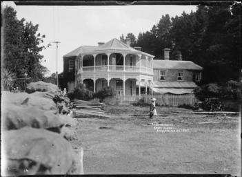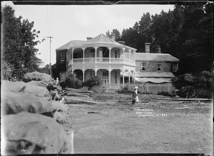 Keywords: blackandwhite monochrome outdoor building architecture black and white Mansion House on Kawau Island, taken from the wharf, in early 1900s. It was possibly being used as a guest house at the time the photograph was taken. In the immediate foreground on the lefthandside are filled sacks piled up on the wharf. Photograph taken by William A Price. Inscriptions: Inscribed - Photographer's title on negative -bottom right: Mansion House. Kawau Island Auckland NZ No 1883. Quantity: 1 b&w original negative(s). Physical Description: Glass plate negative 4.5 x 6.5 inches Mansion House on Kawau Island. Price, William Archer, 1866-1948 :Collection of post card negatives. Ref: 1/2-000242-G. Alexander Turnbull Library, Wellington, New Zealand. natlib.govt.nz/records/22815832 Mansion House on Kawau Island, taken from the wharf, in early 1900s. It was possibly being used as a guest house at the time the photograph was taken. In the immediate foreground on the lefthandside are filled sacks piled up on the wharf. Photograph taken by William A Price. Inscriptions: Inscribed - Photographer's title on negative -bottom right: Mansion House. Kawau Island Auckland NZ No 1883. Quantity: 1 b&w original negative(s). Physical Description: Glass plate negative 4.5 x 6.5 inches Mansion House on Kawau Island. Price, William Archer, 1866-1948 :Collection of post card negatives. Ref: 1/2-000242-G. Alexander Turnbull Library, Wellington, New Zealand. natlib.govt.nz/records/22815832 |