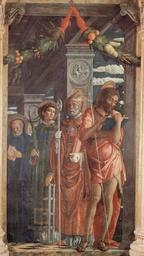 View Original:mantegna_altarpiece_san_zeno_veron_right_panel_st_benedict_st_lawrence_st_gregory_st_john_1459.jpg (1576x2808)