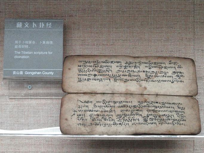 | Keywords: Manuscripts in the Yunnan Nationalities Museum - DSC04010.JPG Tibetan document on divination Manuscripts / writing systems in the Yunnan Nationalities Museum Kunming Yunnan China I took this photograph 2011-08-13 01 16 30 Daderot Public domain Manuscripts in the Yunnan Nationalities Museum Tibetan text |