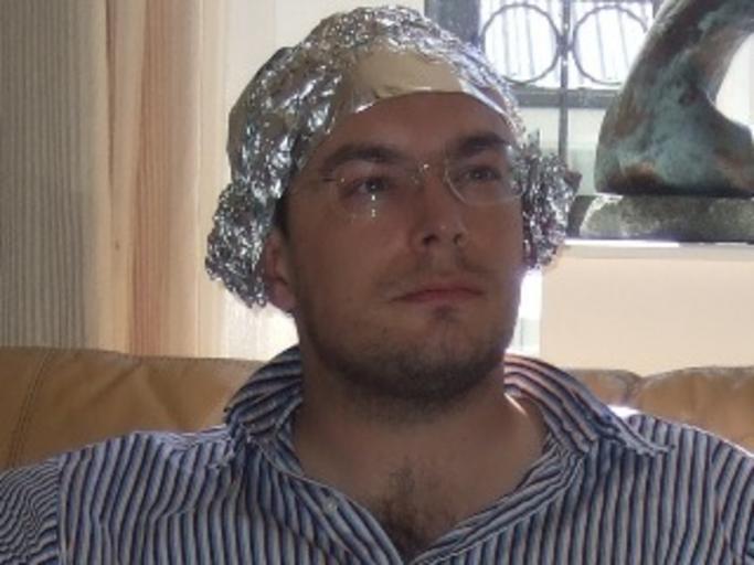 | Keywords: ManWearingTinFoilHat.jpg A man wearing a tin foil hat Transferred from http //en wikipedia org en wikipedia<br/> Original text self-made 2008-04-10 Drvec talk Original uploader was Drvec at http //en wikipedia org en wikipedia Released into the public domain by the author en wikipedia Drvec original upload log page en wikipedia ManWearingTinFoilHat jpg 2008-04-10 04 29 Drvec 320×240× 38088 bytes <nowiki> A man wearing a tin foil hat self-made ~~~ </nowiki> Psychological warfare Fear Tin foil hats |
