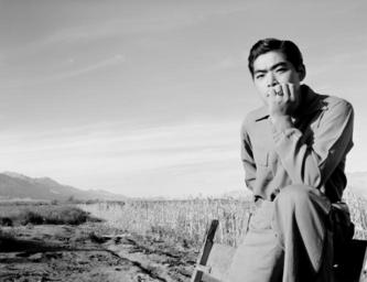 | Keywords: Manzanar portrait Tom Kobayashi 00218u.jpg  Manzanar War Relocation Center Owens Valley California 1943 LOC-image ppprs 00218 Restoration by trialsanderrors http //www flickr com/photos/trialsanderrors/2771084043/ Ansel Adams Portrait of Tom Kobayashi at Manzanar 1943 1943 Creator Ansel Adams Rights Advisory No known restrictions on publication 1 photographic print gelatin silver 1 negative safety film accession number Reproduction Number LC-DIG-ppprs-00245 b w digital file from original print LC-DIG-ppprs-00218 b w digital file from original neg LC-A351-T01-3-M-20 b w film dup neg Call Number LOT 10479-1 no 25 P P institution Library of Congress Prints and Photographs Division Washington D C 20540 USA Title transcribed from Ansel Adams' caption on verso of print Caption on negative sleeve includes the phrase looking at camera Original neg no LC-A351-3-M-20 Gift; Ansel Adams; 1965-1968 Forms part of Manzanar War Relocation Center photographs Ansel Adams Portrait of Tom Kobayashi at Manzanar 1943 jpg 100 PD-Adams-Manzanar Photographs by Ansel Adams of Manzanar War Relocation Center Black and white portrait photographs of men Men looking at viewer Japanese Americans Japanese-American internees Sitting with raised knees Sitting with hand on head Black and white photographs |