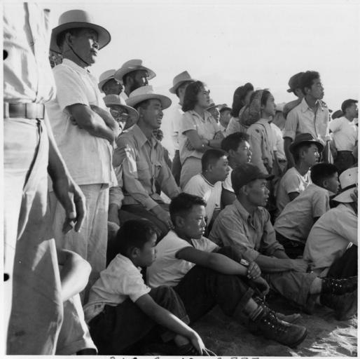 | Keywords: Manzanar Relocation Center, Manzanar, California. Evacuees of Japanese ancestry are enjoying a base . . . - NARA - 538070.jpg Scope and content The full caption for this photograph reads Manzanar Relocation Center Manzanar California Evacuees of Japanese ancestry are enjoying a baseball game at this War Relocation Authority center 80 teams having been organized to date with most of the playing is done between the barrack blocks General notes 538070 Local identifier 210-G-C777 Department of the Interior War Relocation Authority 02/16/1944 - 06/30/1946 NARA-Author Lange Dorothea 1895-1965 Photographer 1372774 <br /> Still Picture Records Section Special Media Archives Services Division NWCS-S National Archives at College Park 8601 Adelphi Road College Park MD 20740-6001 1942-07-02 Record group Record Group 210 Records of the War Relocation Authority 1941 - 1989 Record group ARC 537 Central Photographic File of the War Relocation Authority compiled 1942 - 1945 Series ARC 536000 File unit File unit ARC Variant control numbers NAIL Control Number NWDNS-210-G-C777 Other versions <gallery> File Manzanar_Relocation_Center _Manzanar _California _Evacuees_of_Japanese_ancestry_are_enjoying_a_base_ _ _ _-_NARA_-_538070 tif tif File Manzanar_Relocation_Center _Manzanar _California _Evacuees_of_Japanese_ancestry_are_enjoying_a_base_ _ _ _-_NARA_-_538070 jpg jpg </gallery> NARA-cooperation PD-USGov Photographs by Dorothea Lange of Manzanar War Relocation Center |