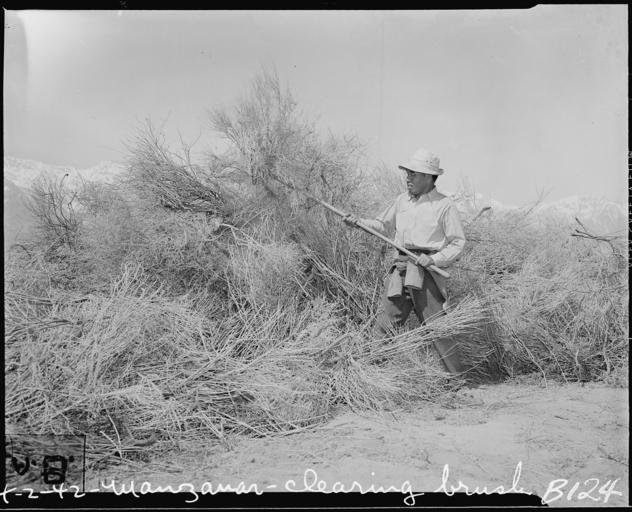 Keywords: Manzanar Relocation Center, Manzanar, California. Clearing brush from land at reception center for . . . - NARA - 536872.jpg Scope and content The full caption for this photograph reads Manzanar Relocation Center Manzanar California Clearing brush from land at reception center for evacuees of Japanese ancestry General notes 536872 Local identifier 210-G-B124 Department of the Interior War Relocation Authority 02/16/1944 - 06/30/1946 NARA-Author Albers Clem Photographer 8452194 <br /> Still Picture Records Section Special Media Archives Services Division NWCS-S National Archives at College Park 8601 Adelphi Road College Park MD 20740-6001 1942-04-02 Record group Record Group 210 Records of the War Relocation Authority 1941 - 1989 Record group ARC 537 Central Photographic File of the War Relocation Authority compiled 1942 - 1945 Series ARC 536000 File unit File unit ARC Variant control numbers NAIL Control Number NWDNS-210-G-B124 Other versions <gallery> File Manzanar_Relocation_Center _Manzanar _California _Clearing_brush_from_land_at_reception_center_for_ _ _ _-_NARA_-_536872 tif tif File Manzanar_Relocation_Center _Manzanar _California _Clearing_brush_from_land_at_reception_center_for_ _ _ _-_NARA_-_536872 jpg jpg </gallery> NARA-cooperation PD-USGov Manzanar War Relocation Center |