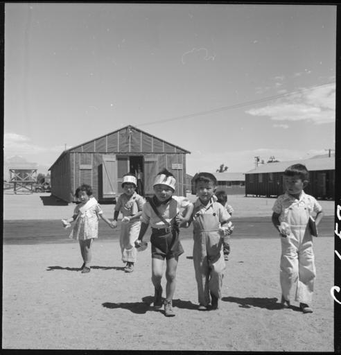 | Keywords: Manzanar Relocation Center, Manzanar, California. Pre-school children on the way to their barrack h . . . - NARA - 537955.jpg Scope and content The full caption for this photograph reads Manzanar Relocation Center Manzanar California Pre-school children on the way to their barrack homes from morning class at this War Relocation Authority center for evacuees of Japanese ancestry General notes 537955 Local identifier 210-G-C657 Department of the Interior War Relocation Authority 02/16/1944 - 06/30/1946 NARA-Author Lange Dorothea 1895-1965 Photographer 1372774 <br /> Still Picture Records Section Special Media Archives Services Division NWCS-S National Archives at College Park 8601 Adelphi Road College Park MD 20740-6001 1942-07-01 Record group Record Group 210 Records of the War Relocation Authority 1941 - 1989 Record group ARC 537 Central Photographic File of the War Relocation Authority compiled 1942 - 1945 Series ARC 536000 File unit File unit ARC Variant control numbers NAIL Control Number NWDNS-210-G-C657 Other versions <gallery> File Manzanar_Relocation_Center _Manzanar _California _Pre-school_children_on_the_way_to_their_barrack_h_ _ _ _-_NARA_-_537955 tif tif File Manzanar_Relocation_Center _Manzanar _California _Pre-school_children_on_the_way_to_their_barrack_h_ _ _ _-_NARA_-_537955 jpg jpg </gallery> NARA-cooperation PD-USGov Photographs by Dorothea Lange of Manzanar War Relocation Center |